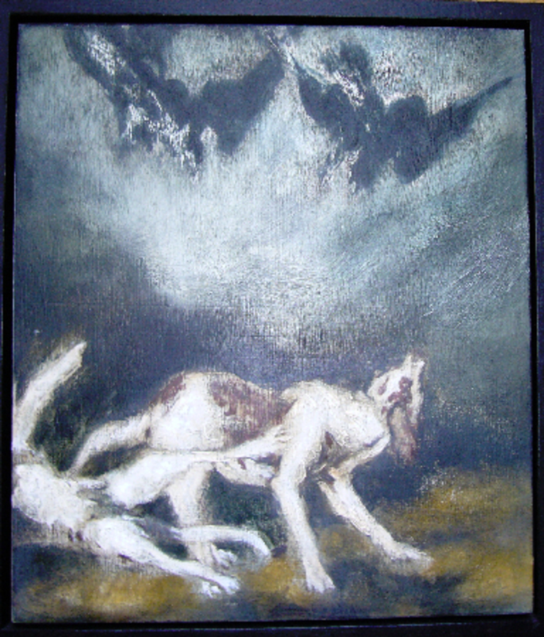 Wood panel: 30 x 26 cm, framed: 33 x 29 cm