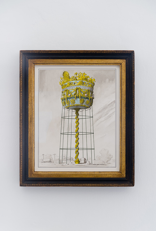 Pablo Bronstein: „Water Tower“, 2019, ink and watercolour on paper, paper: 46 x 38 cm, frame: 75 x 63 cm, Courtesy: Private Collection, photo: Bernhard Kahrmann.
