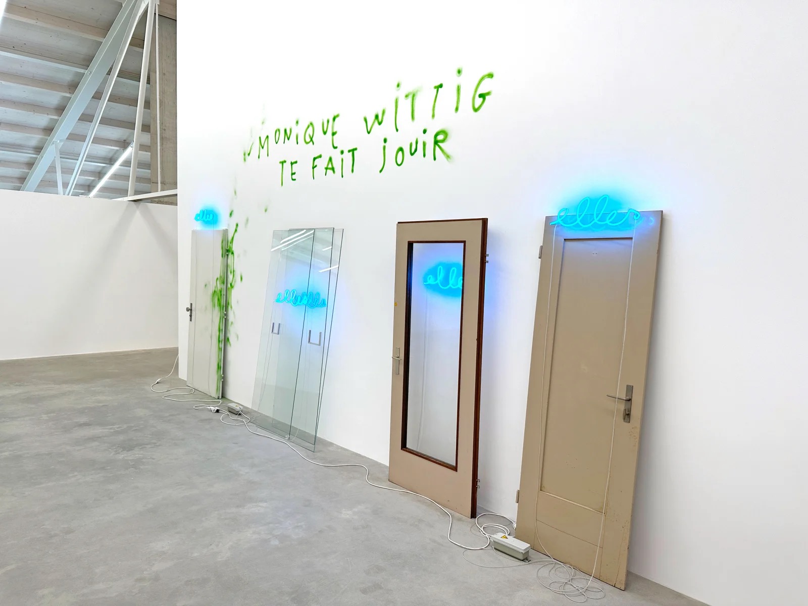 As the subject of her artistic intervention for the new Kunsthaus, Coste chose Monique Wittig, a key figure in French literature of the 1960s. Wittig was among the first to address the predominantly masculine nature of the French language in her numerous texts. However, her persistent debates considerably diminished her own success as an author in a male-dominated environment. Coste’s work Elles Elles Elles Ellesis therefore also a tribute to the author, who died in 2003. At the same time, it invokes the promise of lived equality, which is still worth fighting for.