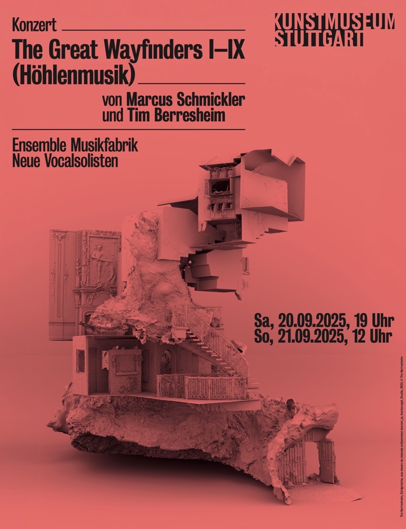 Der Komponist und Performancekünstler Marcus Schmickler entwickelt gemeinsam mit dem Künstler Tim Berresheim ein Musikprojekt. Mit seinen kaleidoskopisch elektronischen Sounds wirft Schmickler darin einen Blick einer imaginierten Zukunft zurück auf unsere Gegenwart, die er als sog. »digitale Steinzeit« bezeichnet. Tim Berresheim gestaltet ein Bühnenbild, das aus digitalen Vermessungen der Höhlen der Schwäbischen Alb entstand. Darüber hinaus ist der Künstler mit einigen Werken in der Ausstellung vertreten.